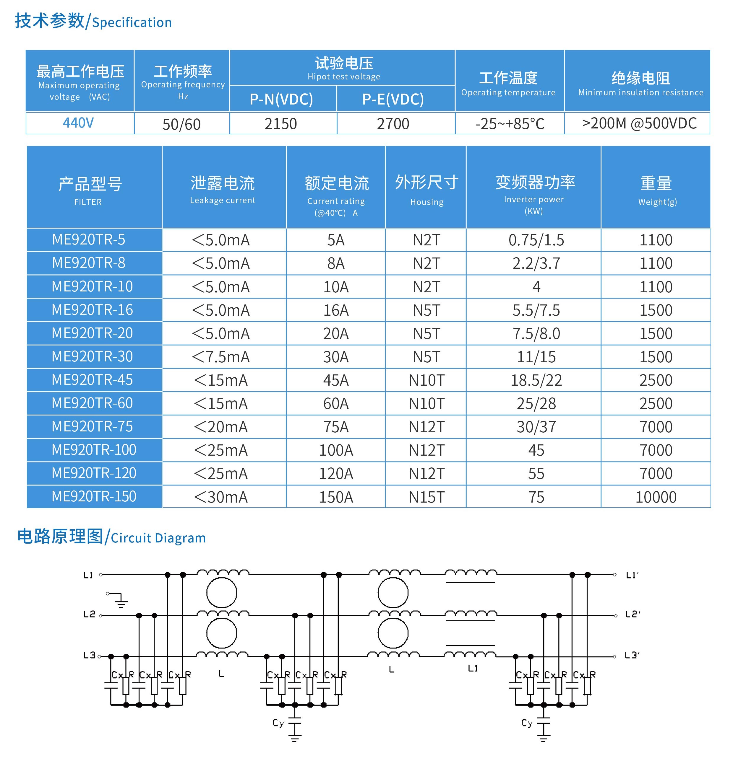 ME920TR系列變頻器端子臺式輸入EMC濾波器