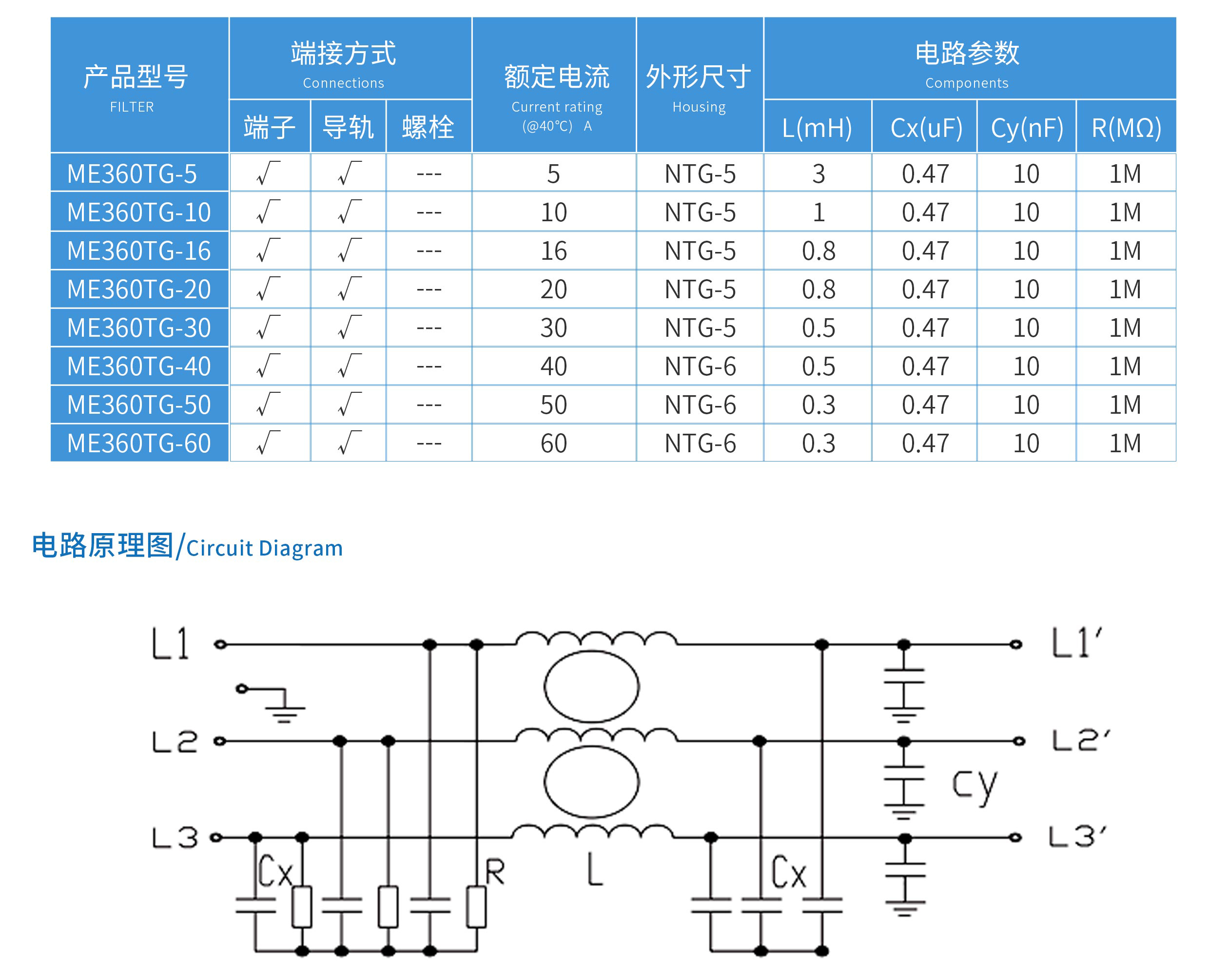 ME360TG系列三相三線電源濾波器(端子臺(tái)導(dǎo)軌式)